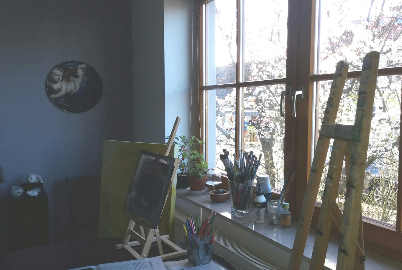 intensive Porträtmalerei, Auftragsarbeiten, Teilnahme an Zeichenkursen, Workshops und Malunterricht